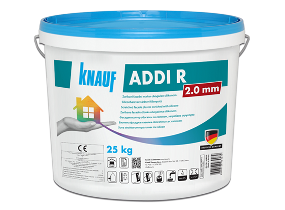 ADDI je spreman za upotrebu, vodorazredivi, zaribani završni fasadni malter obogaćen silikonom, namenjen za sisteme kontaktne fasade sa EPS-om i kamenom mineralnom vunom.