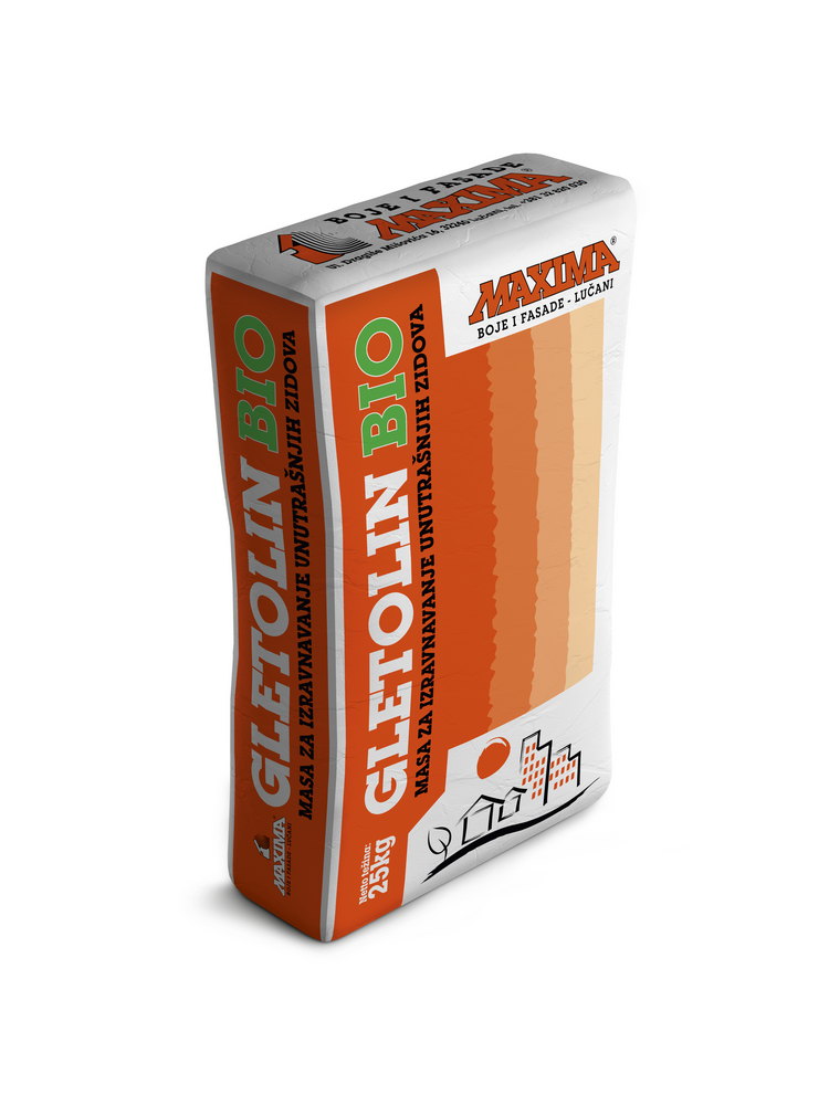 GLETOLIN Bio je praškasta masa za gletovanje unutrašnjih, čvrsto malterisanih zidnih površina, kao i gips kartonskih ploča. GLETOLIN Bio odlikuje lakoća nanošenja i obradivost. Izravnane površine, koje su potpuno suve, mogu se bojiti svim vrstama disperzionih boja.
