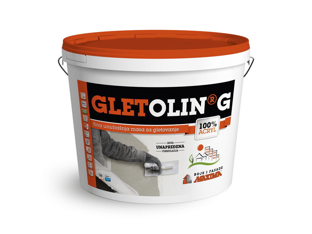 GLETOLIN G je pastozna masa na bazi akrilata, namenjena za fino gletovanje unutrašnjih, čvrsto malterisanih zidnih površina, kao i gips kartonskih ploča. GLETOLIN G odlikuje izuzetna belina, lakoća nanošenja i obradivost. Izravnane površine, koje su potpuno suve, mogu se bojiti svim vrstama disperzionih boja.