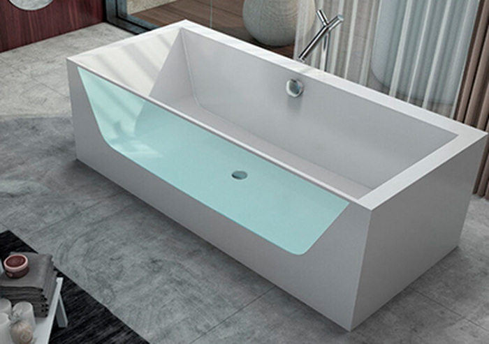 Samostojeća kada za kupanje od Kerrock materijala za kupanje, sa transparentnim akrilnim zidom i ugrađenom hromoterapijom. Sadrži 2 RGB svjetla, odlivno-prelivnu garnituru sa Up&Down sistemom i vazdužni sistem masaže.