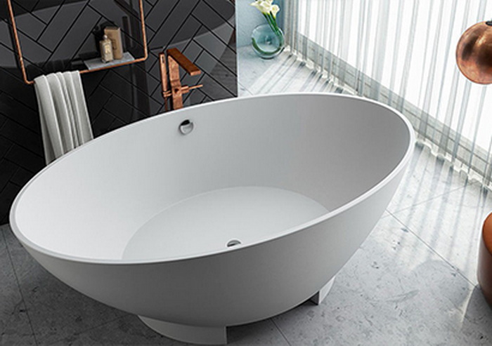 Samostojeća ovalna kada za kupanje od Kerrocka, sa kromiranim prelivom. Mogućnost postavljenja kade u prostor samostalno.