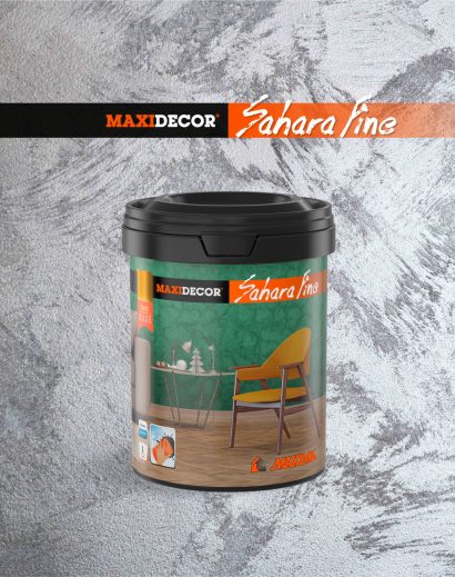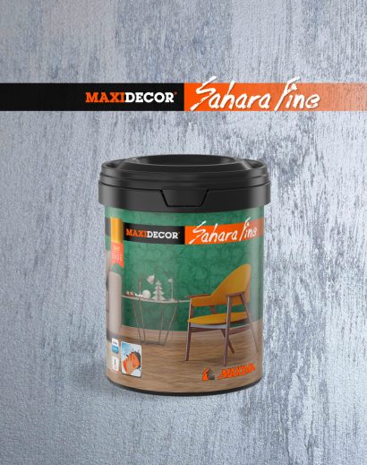 MAXIDECOR Sahara Fine je efektna boja izuzetnog kvaliteta, izrađena na bazi vodene disperzije akrilnih veziva, posebno selektovanih punila, specijalnih aditiva i efektnih pigmenata. MAXIDECOR Sahara Fine ima nešto finiju granulaciju od MAXIDECOR Sahara dekorativnog premaza. Namenjen je za zaštitu i dekoraciju unutrašnjih zidnih površina, gde je potrebno kreirati uzbudljiv i dinamičan efekat. Može se tonirati na MAXIMIX sistemu prema MAXIDECOR Sahara i Sahara Fine ton kartama.