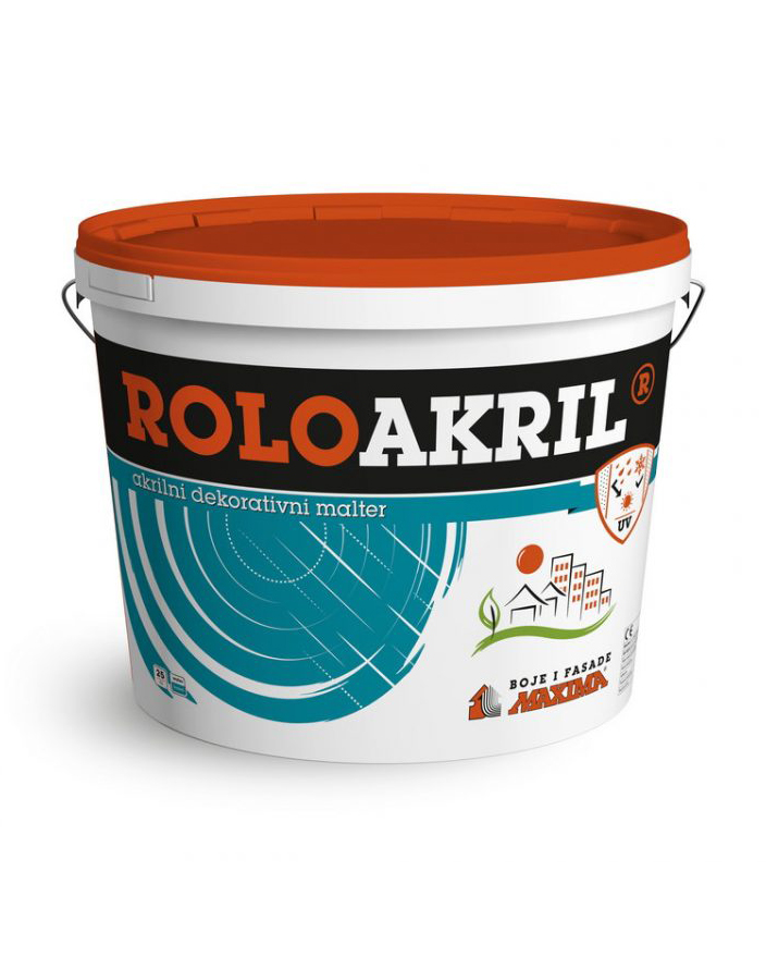 ROLOAKRIL je kvalitetan dekorativni malter na bazi akrilata sa dodatkom silikona koji obezbeđuje odličnu vodoodbojnost i unapređuje otpornost na prljanje. Odlikuje se visokom čvrstinom, dobro prijanja na površinu i ima dobru paropropusnost. Postojan je na delovanje atmosferskih uticaja i UV zračenja. Namenjen je za zaštitu i dekoraciju spoljašnjih i unutrašnjih mineralnih zidnih površina. Završni je sloj pri izradi termoizolacionih fasada. Proizvodi se u beloj boji, a može se tonirati i na MAXIMIX sistemu, u nijansama označenim sa F.