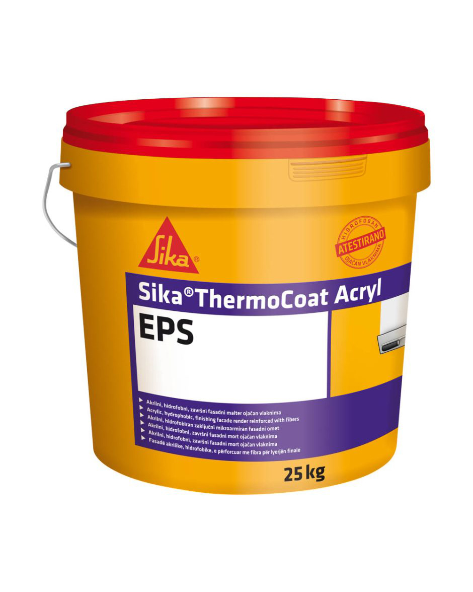 Sika® ThermoCoat Acryl EPS je kvalitetni jednokomponentni akrilni malter, sa dekorativnom i zaštitnom funkcijom, jednostavan za ugradnju. Namenjen je završnoj obradi spoljašnjih i unutrašnjih zidnih površina i kao završni sloj u termoizolacionim sistemima. Proizvodi se u beloj boji, ali se može tonirati u neku od nijansi iz Sika® ton karte.